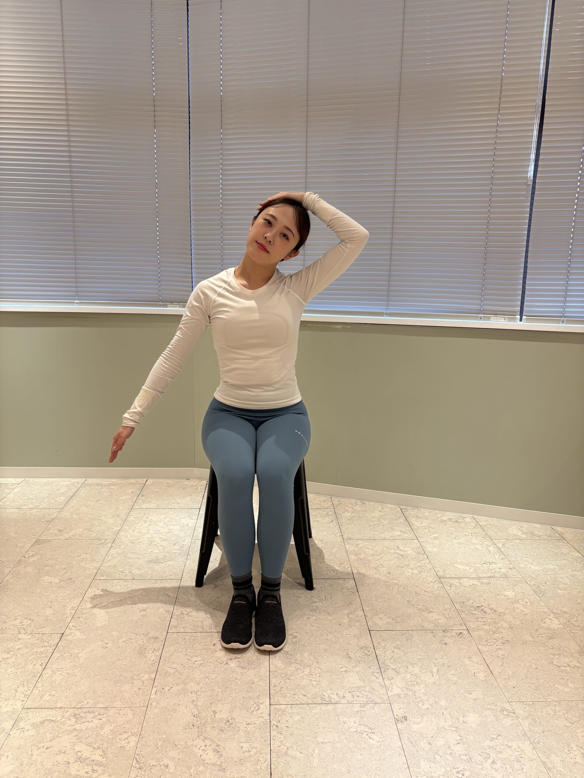 片手で頭を軽く支え、ゆっくりと横に倒します。