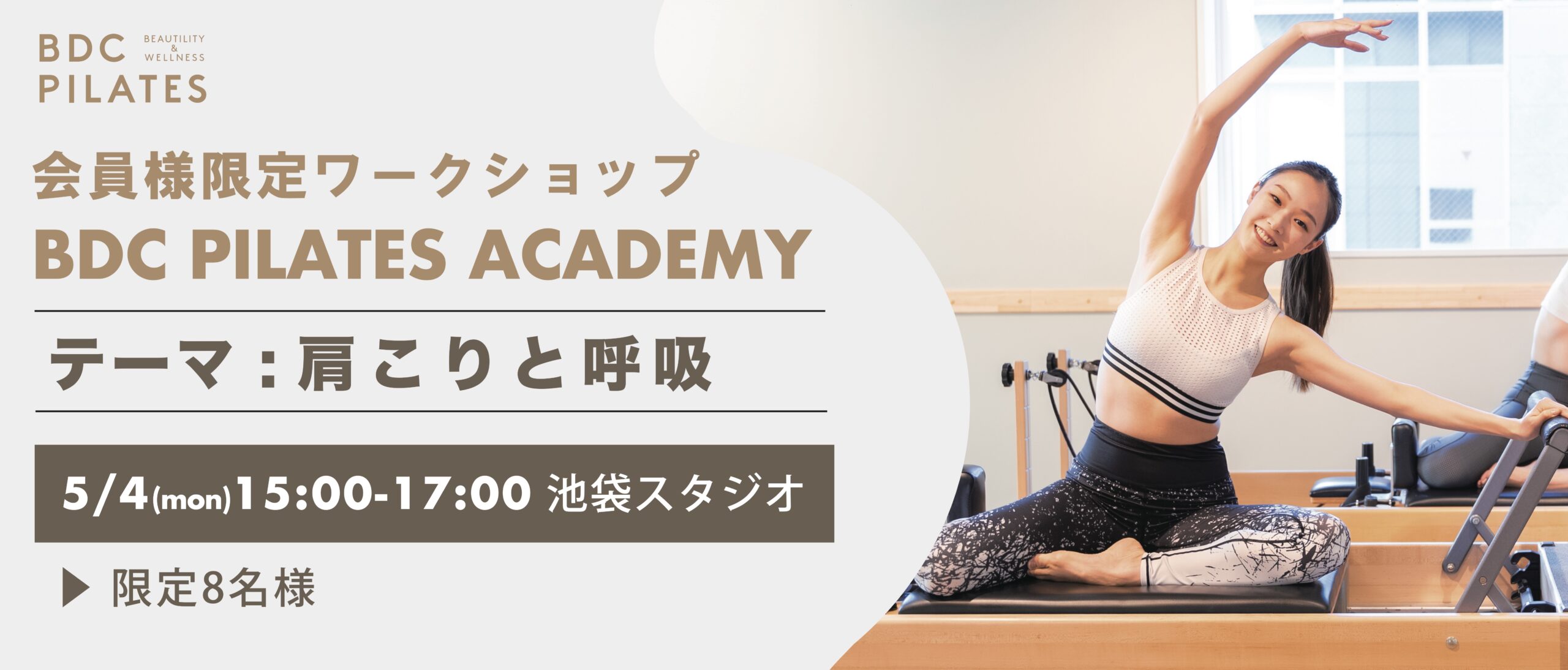 ピラティスの基本である呼吸の見直しにもなりますので、知識を深め身体で味わうワークショップ、皆さまのご参加お待ちしております!