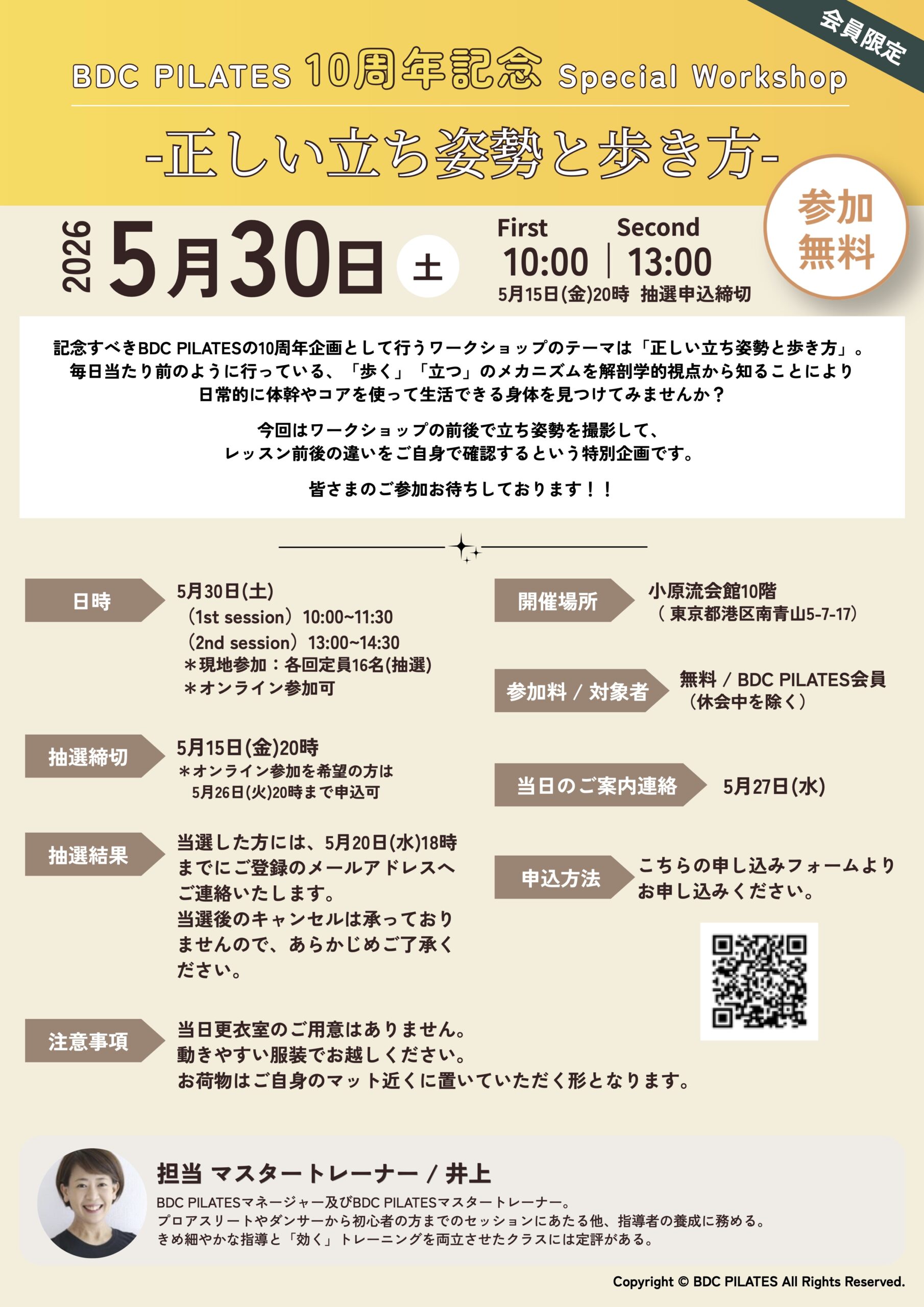 記念すべきBDC PILATESの10周年企画として行うワークショップのテーマは「正しい立ち姿勢と歩き方」。