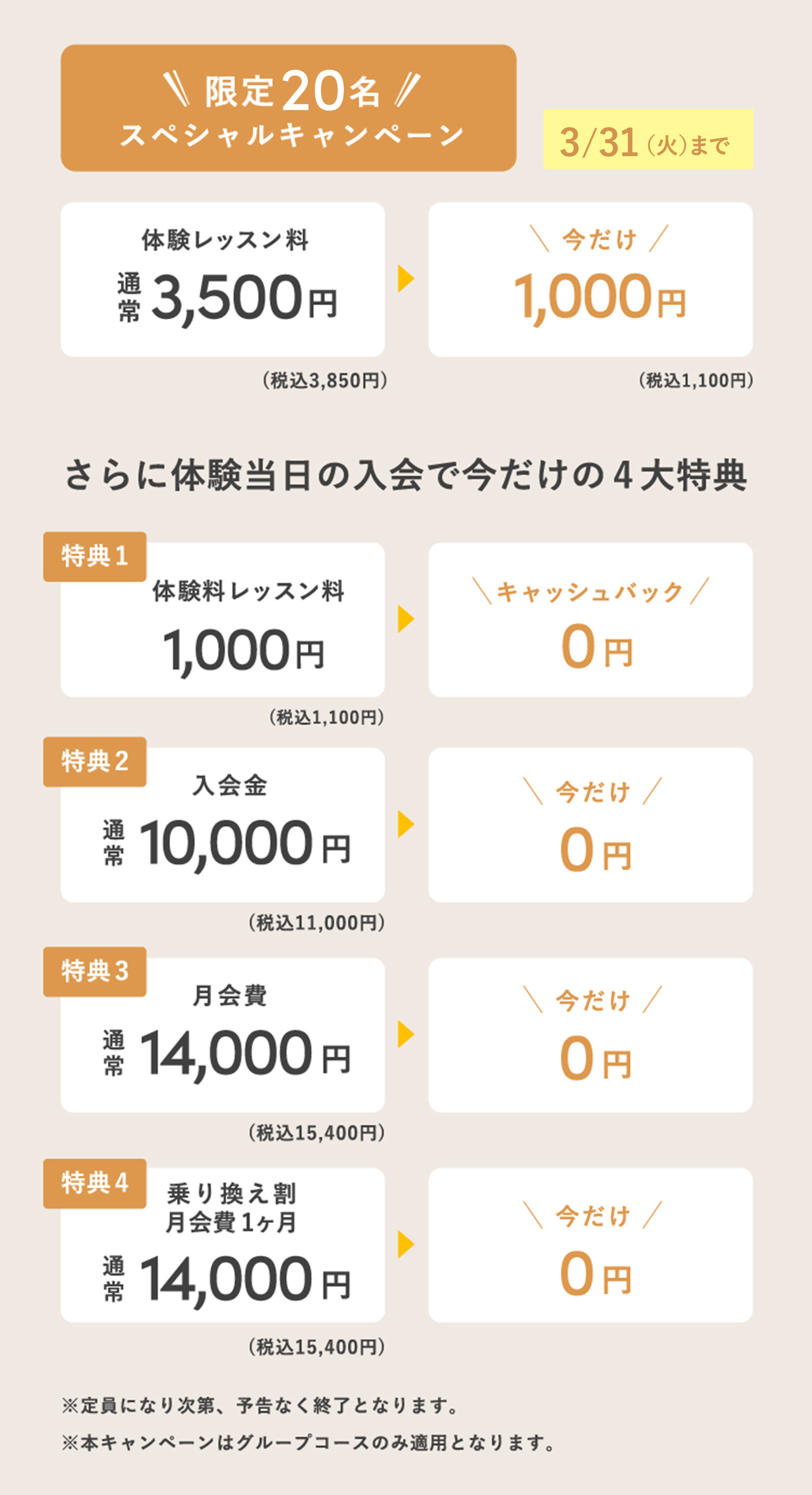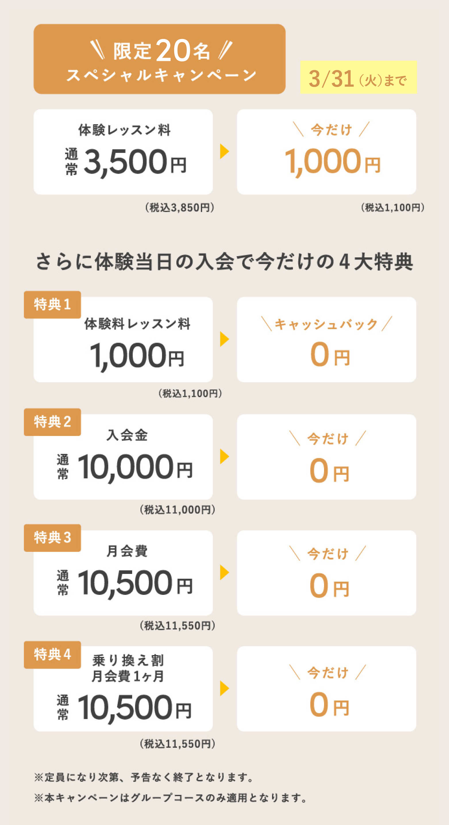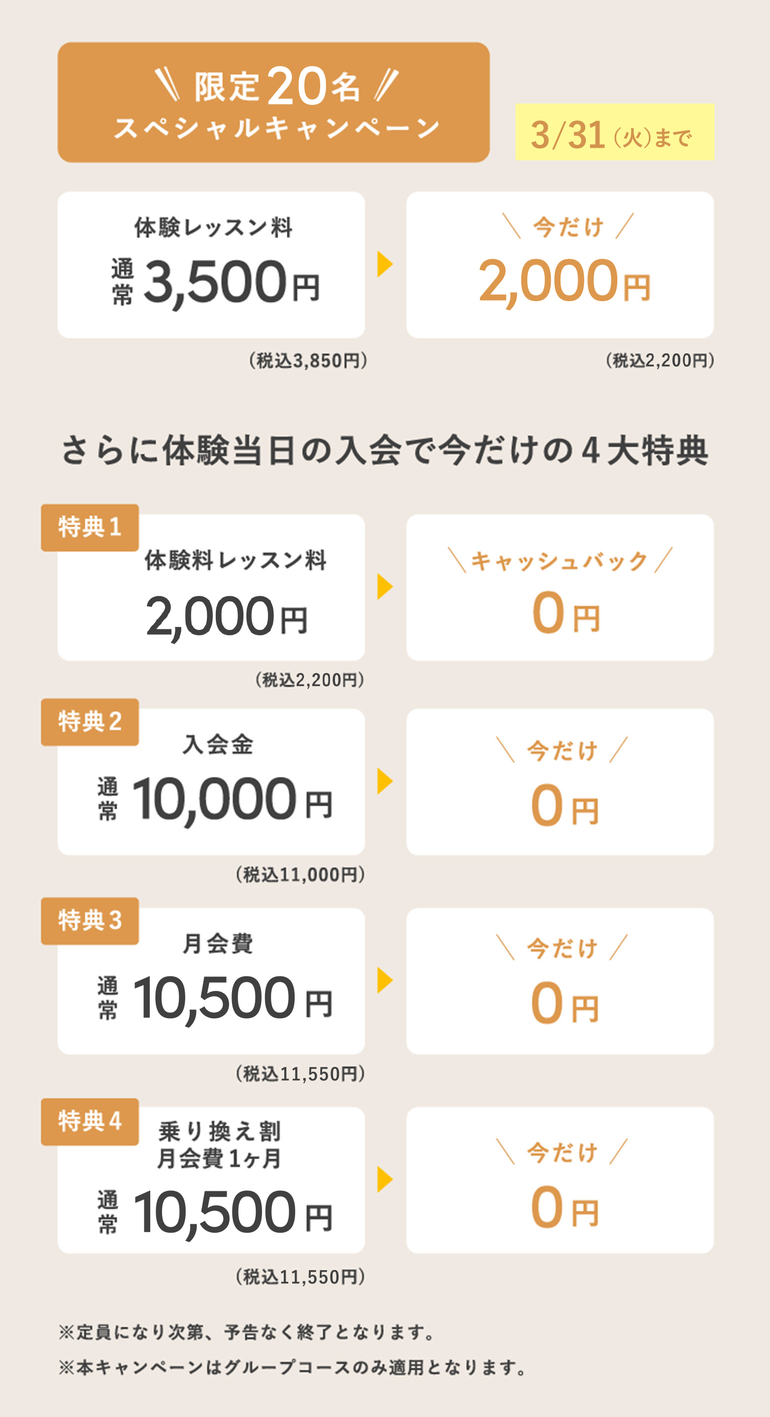 各コースの受講権利は所属店舗でご利用いただけます。他店舗での受講の場合は追加レッスン料が必要です。